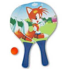 玩具球拍设置与多色样式打印和动画片海滩桨