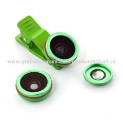 180度鱼眼镜头0.67x广角10X微距3合1镜头手机相机,多色,免费标志,OEM
