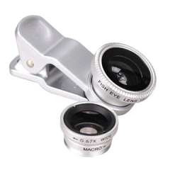 银3合1夹式鱼眼镜头,0.67X广角10X宏手机摄像头,免费标志
