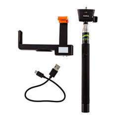 价格实惠,有线电缆杆,独脚架自拍杆w /可折叠手持,黑色,没有面糊
