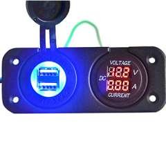 面板安装防水5V 2端口汽车USB电压表充电器插座