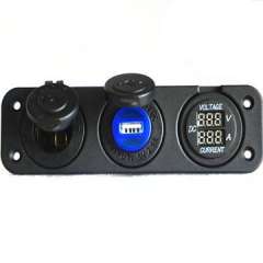 帐篷船用12V直流电源插座,带USB充电器的扩展插座,数字电压表