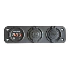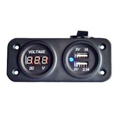 通用船用/汽车/汽车插座,12V电源插座+双USB充电器+数字电压表