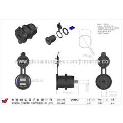 通用船用/汽车/汽车双USB电源充电器和数字电压表插座