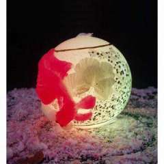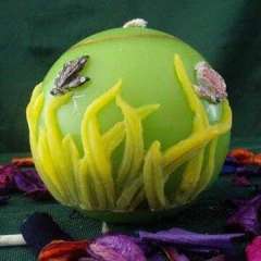 与两只蝴蝶和植物浮雕的球状蜡烛,由石蜡制成