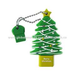 圣诞树PVC礼品USB闪存驱动器,1/2/4/8/16/32 / 64GB,OEM订单