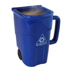 创造性的蓝色垃圾垃圾箱被手工造的陶瓷咖啡杯