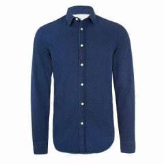蓝色曲线领男式休闲长袖衬衫,OEM和ODM订单欢迎