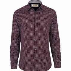男士休闲衬衫,长袖,几何印花,100%棉