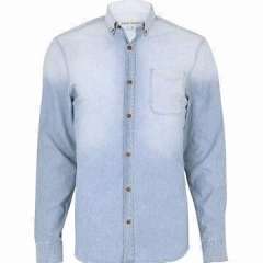 男士牛仔长袖休闲衬衫,100%棉,服装冲洗,钮扣领