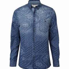 男士牛仔布按钮衬衫,长袖,100%棉,佩斯利打印,休闲,服装冲洗