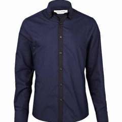 男士长袖休闲衬衫,100%棉,双对比领领扣