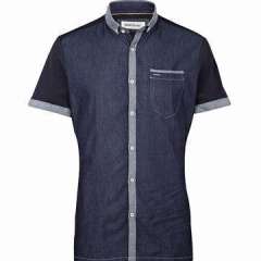 男士短袖牛仔休闲衬衫办公用,100%棉