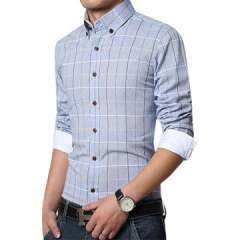 男式格纹长袖休闲衬衫