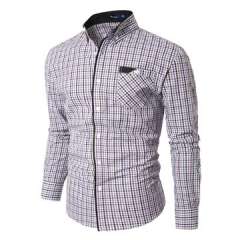 男士时尚棉和聚酯休闲口袋详细格子衬衫长袖
