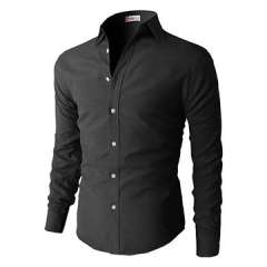 男士时尚黑色长袖商务衬衫
