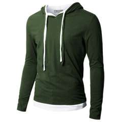 男士绿色休闲套头衫连帽衫,长袖,定制被接受