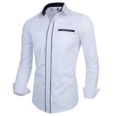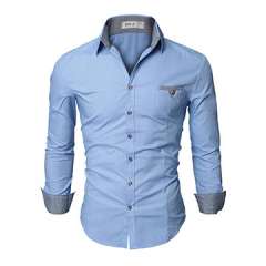 男士长袖衬衫搭配智能领,采用100%纯棉制成
