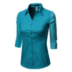 女士休闲衬衫,卷起袖子,服装洗涤,V领,定制被接受