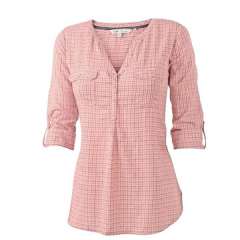 女士休闲衬衫,机织纱染棉,卷起袖子,贴有纽扣的贴袋,V领