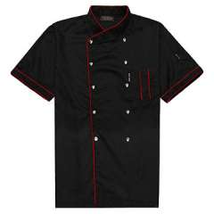最新的黑色厨师制服,短袖,棉和聚酯制成
