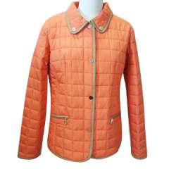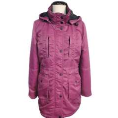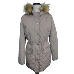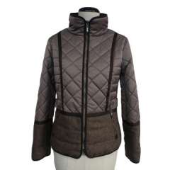 女士冬季夹克,100%涤纶,绗缝大衣,拉链口袋,前面和领口