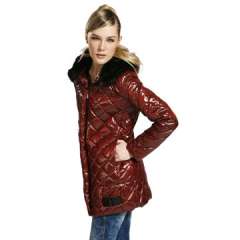 妇女的冬天夹克,与假毛皮的敞篷,适合样式