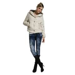 女士冬季夹克,100%涤纶,花式绗缝,蓬松领,银拉链前面