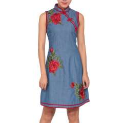 新时尚秋冬无袖普通话领牛仔女装刺绣外套