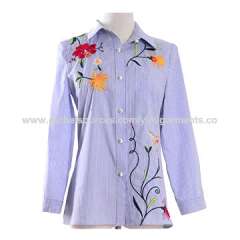 长袖绣花女式长衬衫