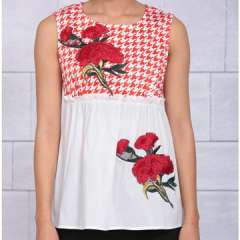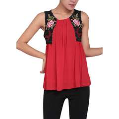 新时尚女士花绣无袖衬衫