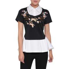 新时尚绣花领短袖衬衫为女士