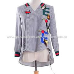 新时尚长袖V领女士衬衫刺绣