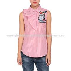 无袖修身绣花女式衬衫