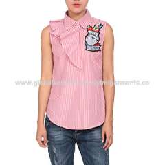 西装领无袖刺绣女士衬衫