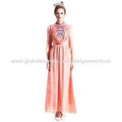 制造商优质高领绣花女装裙