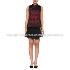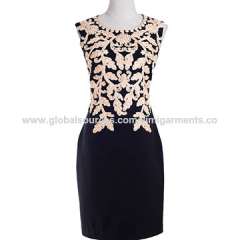 时尚风格与花刺无袖单件女装连衣裙