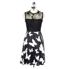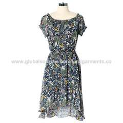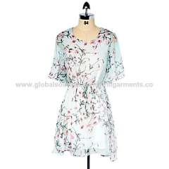 花卉印刷品茶樱桃样式桃红色夫人的转移礼服