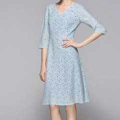 热5季度袖花边飘逸舞蹈连衣裙与V领