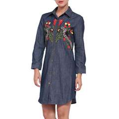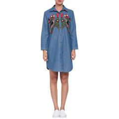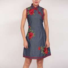 新款时尚设计女士绣花针织连衣裙在牛仔布