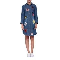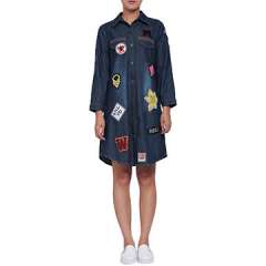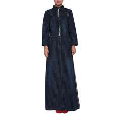 在牛仔布的新时尚妇女转移礼服