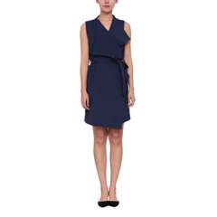 新时尚无袖v领短连衣裙带腰带