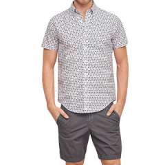100%短袖印花休闲衬衫为男性