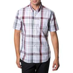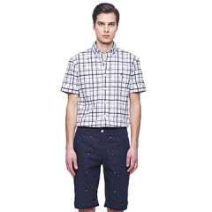 100%棉短袖方格休闲衬衫为男性