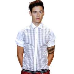 2016修身短袖格子休闲衬衫男士