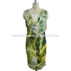 女士时尚印花无袖移调连衣裙,环领口