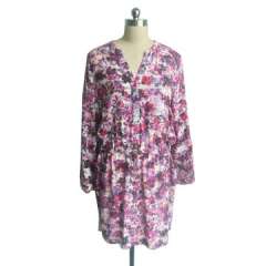女士的漂亮印花班服装,与按钮装饰
