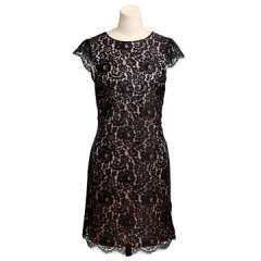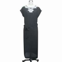 女士典雅蕾丝层膝长连衣裙,100%棉制成