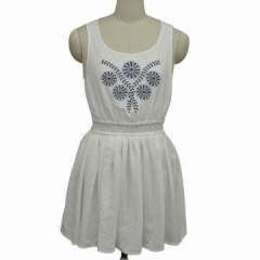 妇女的时尚被绣的无袖的礼服,好纹理