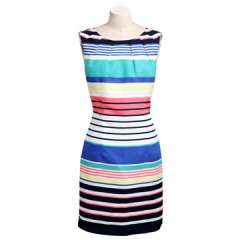 妇女的时尚小条多色A线礼服,尼斯纹理